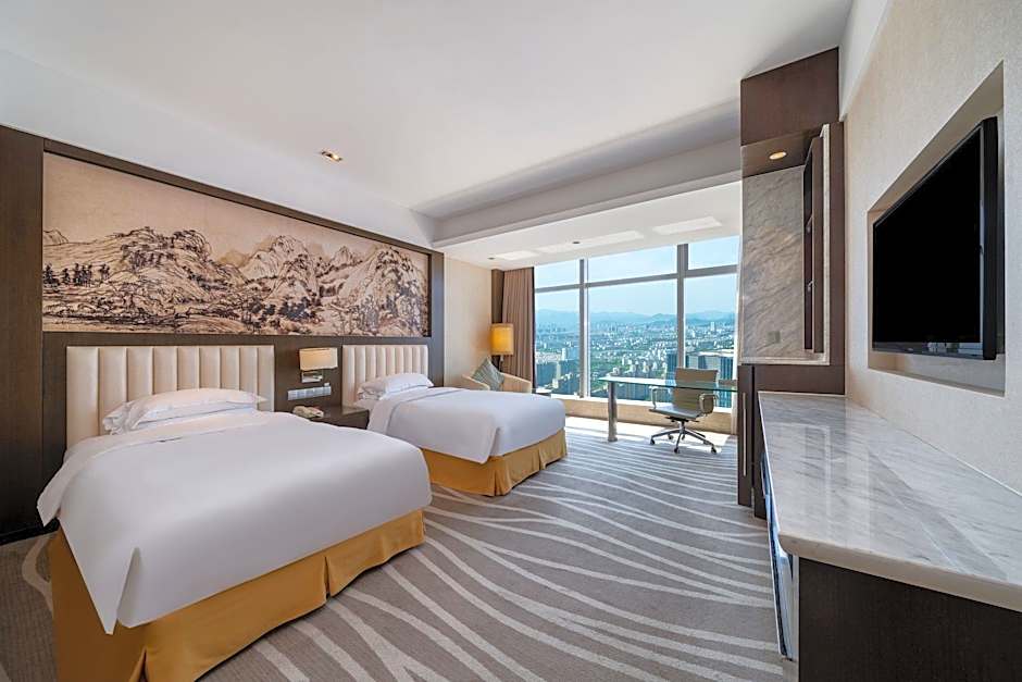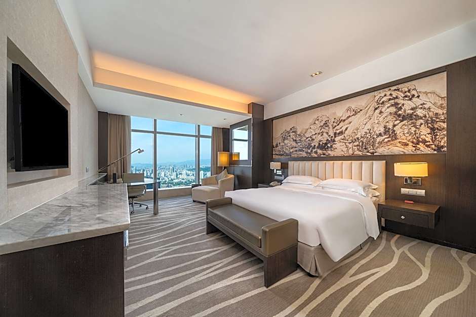 The suite has city views. The unit has 1 bed.